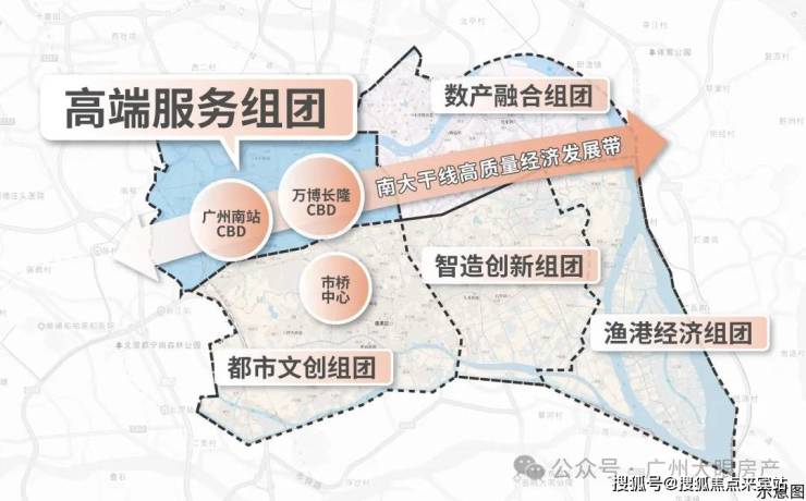 广州南站更是串联万博、长隆两大板块,以“超级枢纽+超级商圈”模式平移都市中心,南站8km范围聚集番禺70%的经济总量、70%的常住人口,拥有前沿的产业体系+集中的商业配套+宜居的生态资源+高效的通勤速度,是番禺最适合生活居住的组团,打造广州不可复制的“黄金动脉