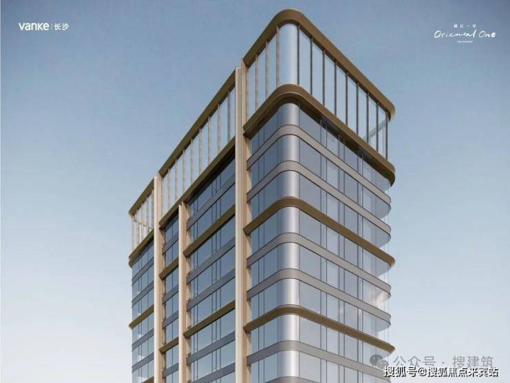 建筑大量运用曲线曲面元素,平衡的体积、起伏的曲线,具有极尽流动动感和精致细节。香槟金铝板搭配270°弧形转角落地玻璃幕墙,恰是对江景视野的保留。约150米长沙河西超高住宅,约7米皇冠般塔冠,演绎C位封面。