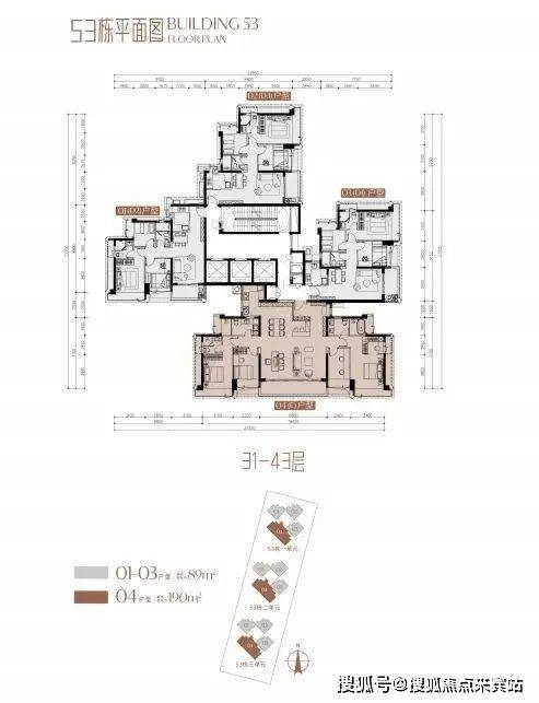 1️⃣58栋77套:89㎡3房,190㎡4房(5月推售)
