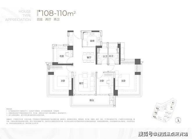 竖庭格局,西南向,基本居住功能与建面约108-110㎡4房2卫一致,但格局不一样,从目前公布的户型图上看,主要是主卧空间有了更大的提升,比如可以放更大一点的衣柜。但从位置上看,它所在的楼栋更靠近主干道,会有噪音影响。