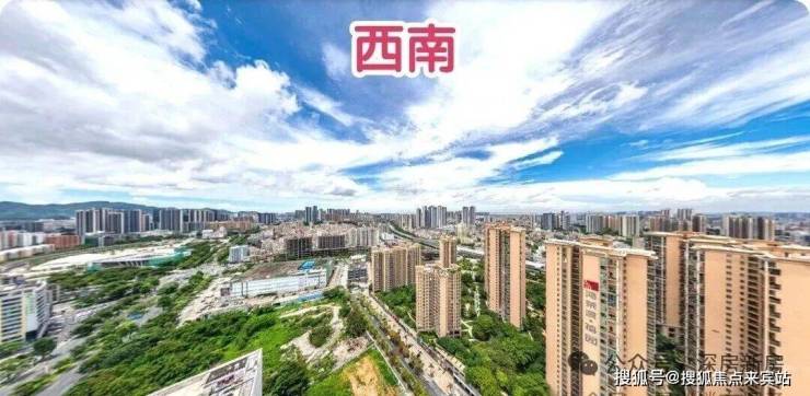 西南:看国际会展中心方向,朝小区外部,18层以下视野会受到鸿荣源禧园建筑影响,近距能看到鸿荣源禧园局部花园景观,远处有一些超高层建筑,但密度不高,18层以上视野都会比较开阔,只是远处低矮老旧建筑太多,城市面貌观感欠佳,只有高层段个别角度能隐约看到点海景。