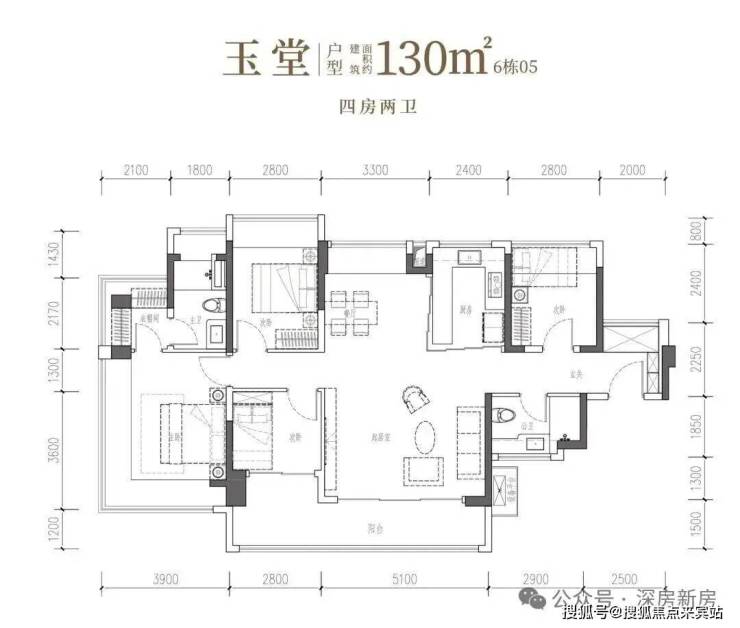 •玉堂·建面约130㎡4房2厅2卫:南向四开间,约14.7米IMAX光幕,尺度自成