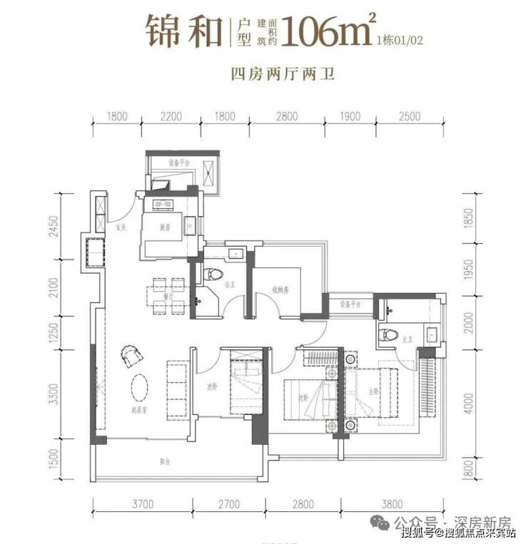 •锦和·约106㎡四房两厅两卫:南向四开间,一线园林景观,自在奢想
