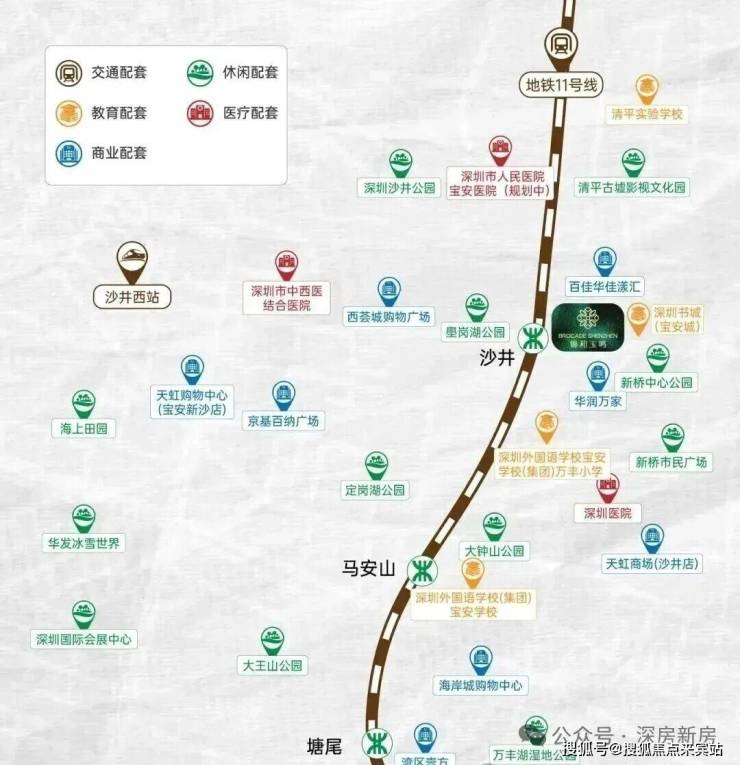 项目地处沙井新桥板块商务中心、中央居住区,深圳西部新中心,三公里荟萃教育、商业、医疗、公建等全维城市资源,尽享时尚、便捷的繁华生活。