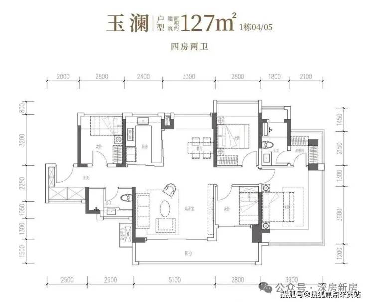 •玉澜·建面约127㎡4房2厅2卫:南向四开间,南北通透,约14.7米IMAX光幕,独立衣帽间