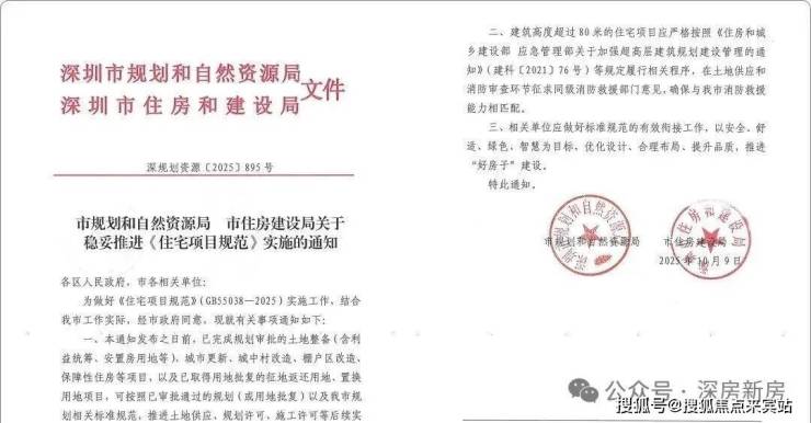 10月9日,一份由深圳市规划和自然资源局、市住房和建设局联合发布关于稳妥推进《住宅项目规范》(GB55038-2025)实施的通知(以下简称《通知》),引发市场高度关注。《通知》明确,即日起报批建设的高度超80米住宅项目,应严格按照《住房和城乡建设部 应急管理部关于加强超高层建筑规划建设管理的通知》(建科〔2021〕76号)等规定履行相关程序,在土地供应和消防审查环节征求同级消防救援部门意见,确保与我市消防救援能力相匹配。