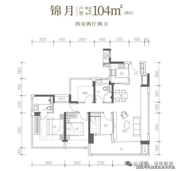•锦月·建面约104㎡4房2厅2卫:南向四开间,6米阳台引景入室,自此生活融于风景