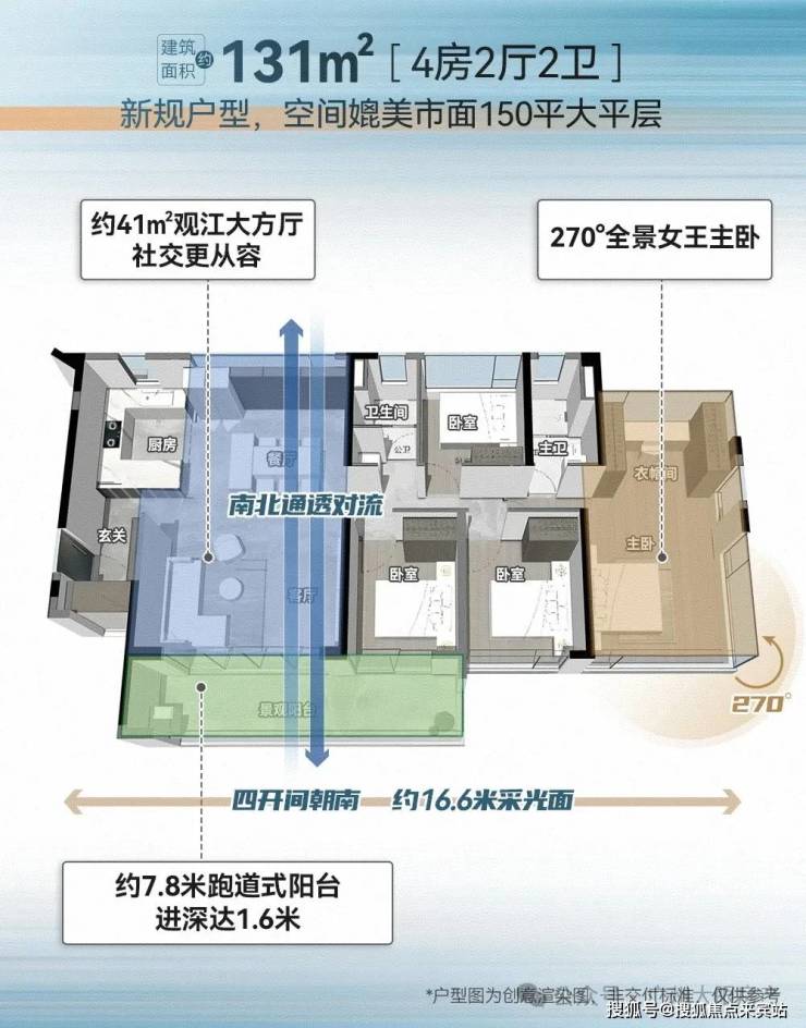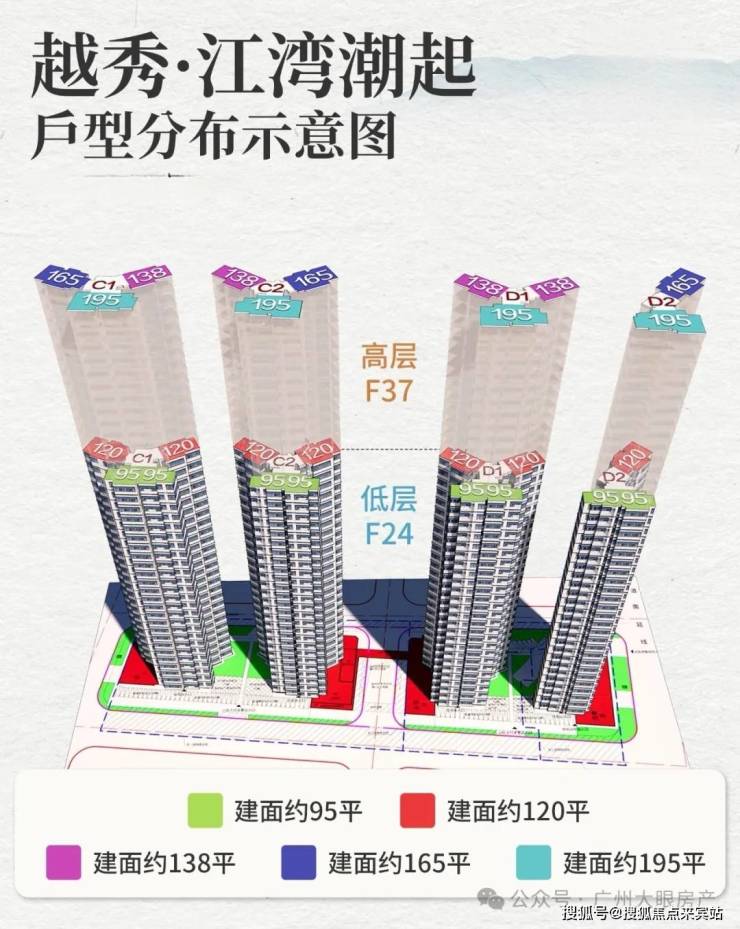 项目共规划4栋住宅楼,均为37层,分高低区设计,而且梯户比跟户型都各不相同: