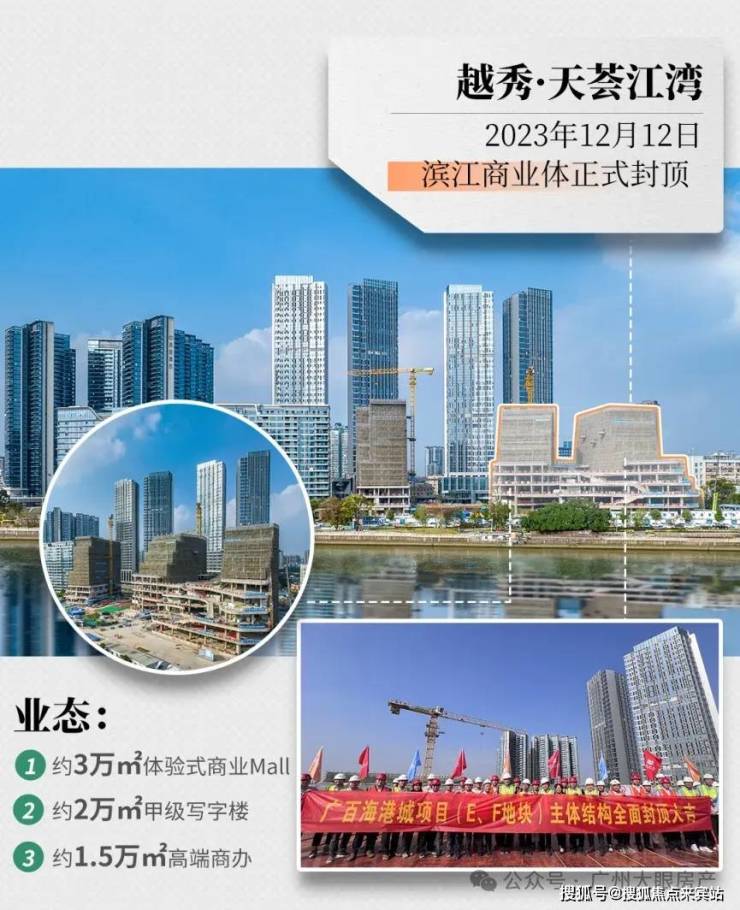 旁边的广百海港城已在2023年12月12日正式封顶,预计在今年底正式开业,它是广州首个大型的滨江海港城,集商务办公、休闲购物、酒店于一体,计划引进奢侈品牌旗舰店、生态写字楼、五星级酒店等业态。家门口解决吃喝玩乐,给项目加分不少。