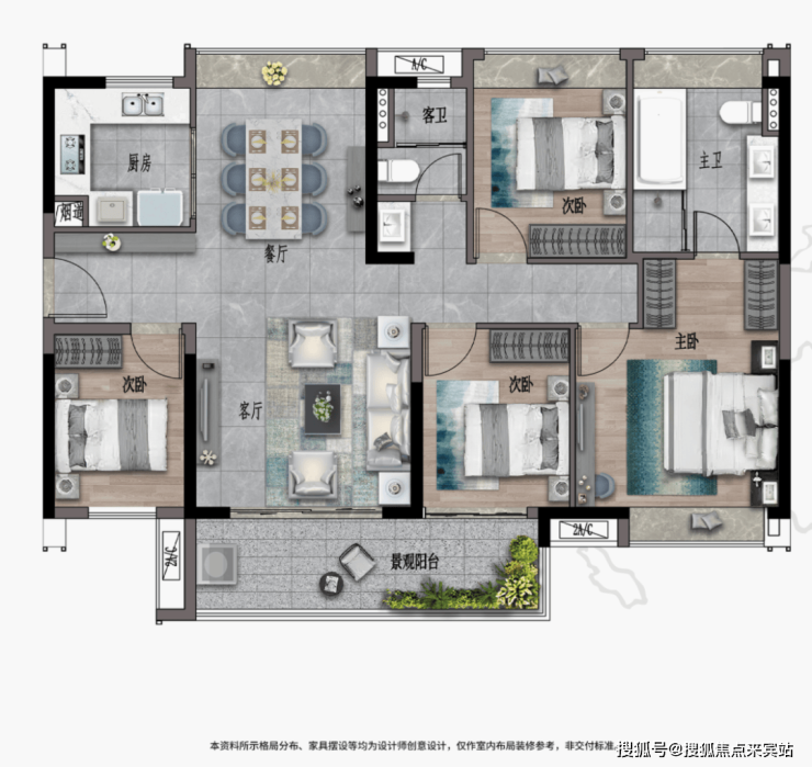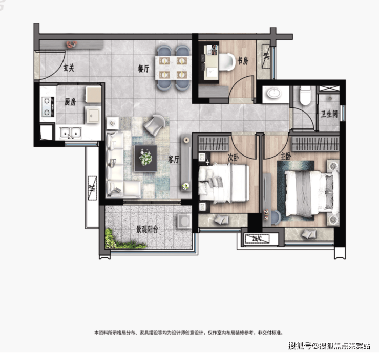 约三房带主套+望江/望园林+约3.3m开间阔厅