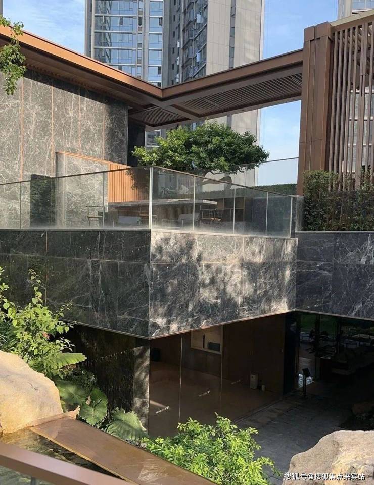 小区中心位置配备山水会客厅,它参照赖特流水别墅,结合园林高差打造建⾯约 1300 ㎡榕樾山水会客厅,兼具实⽤性和⾼级感。整体分上下两层设计,上层打造⽆边界成人/儿童双泳池,下层AI智慧自习室与火石健身空间形成动静相宜的活力磁场。30余种珍稀植物打造的林下空间,让建筑与溪瀑、叠石共生共长。集健身房、瑜伽室以及儿童的悦美学堂, 目前运动空间已引进著名火石健身开展运营;