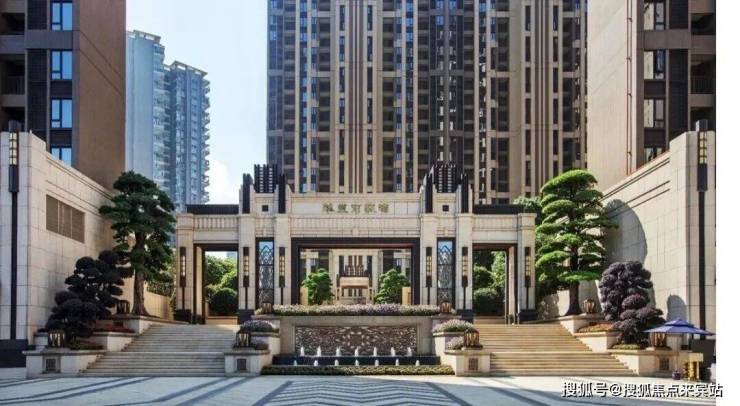 项目本身打造很奢华,深褐色与淡黄色真石材外立面,价值不菲的罗汉松主题园林,对称式皇家园林布局,十分古典大气有排面,颜值颇高不落俗套。
