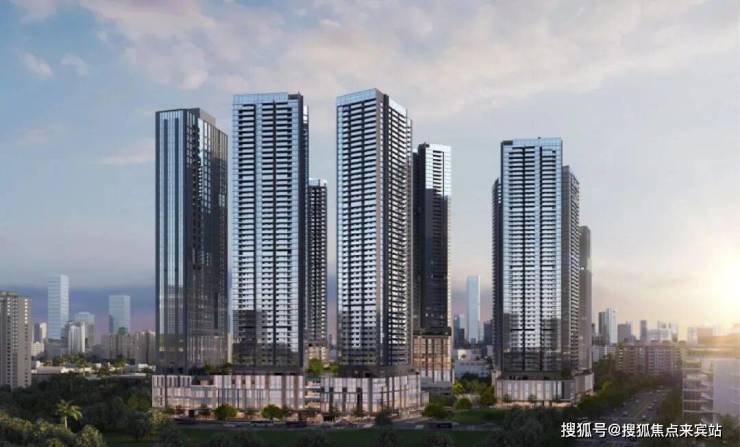 项目为地标级综合体,涵盖住宅、商业、办公、酒店及公共配套设施。住宅共8栋,楼高43至55层,并配建2栋26至35层的写字楼+酒店和1所12班幼儿园。