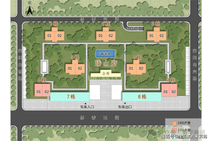 瑧山府的大门设计的格外气派,玉琮、水池、罗汉松、草坪…结合高端大气的入户大堂,显得奢华而又文雅。