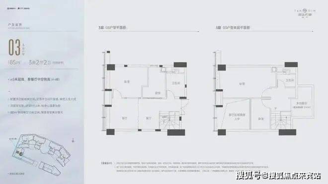 低区以朝向为主导,布置140m²轻奢产品;高区以景观为主导,布置190~250m²豪宅产品;拥有一线江景资源的顶层北侧则打造350~420m²奢华大平层户型。