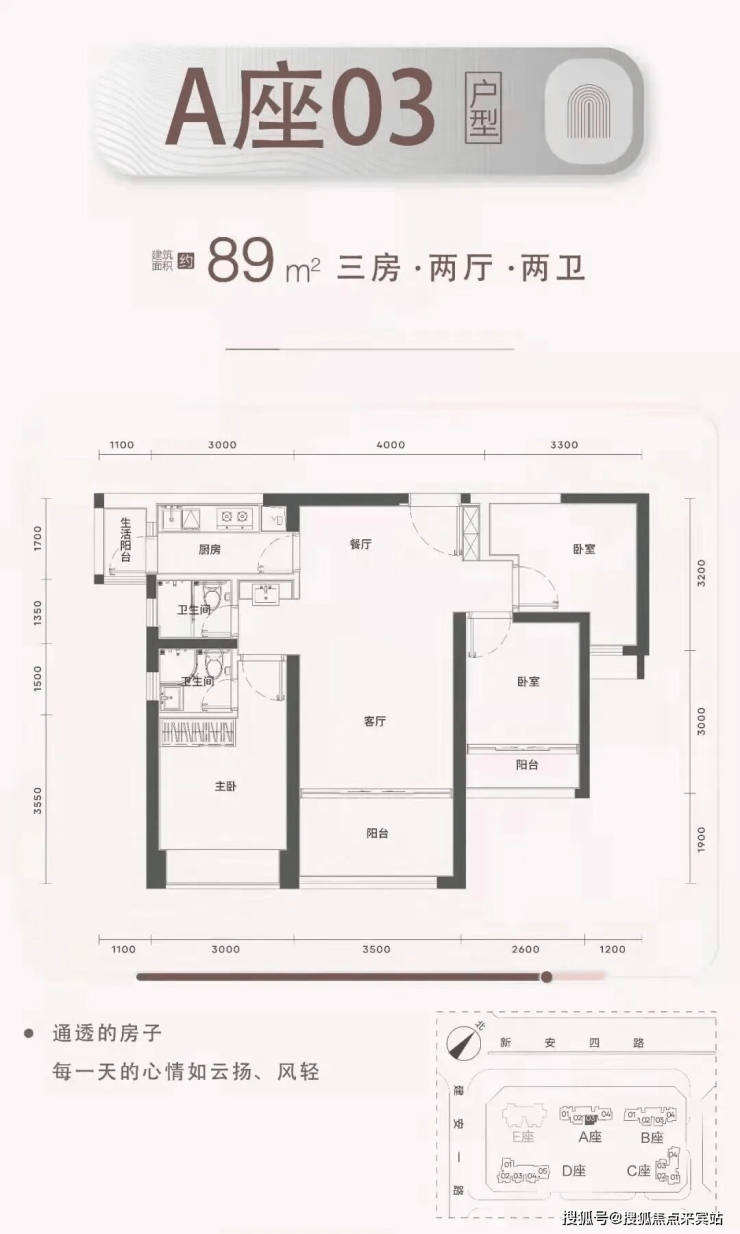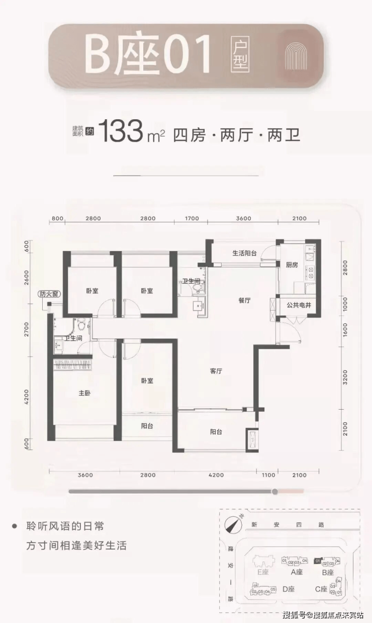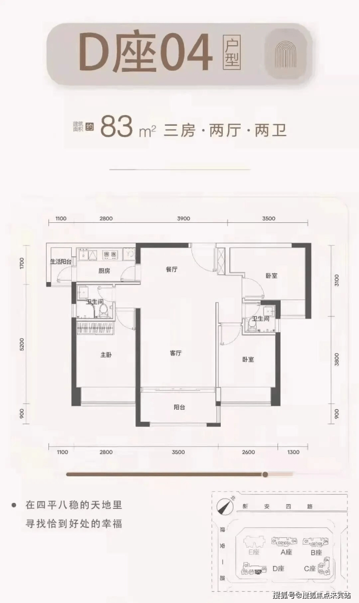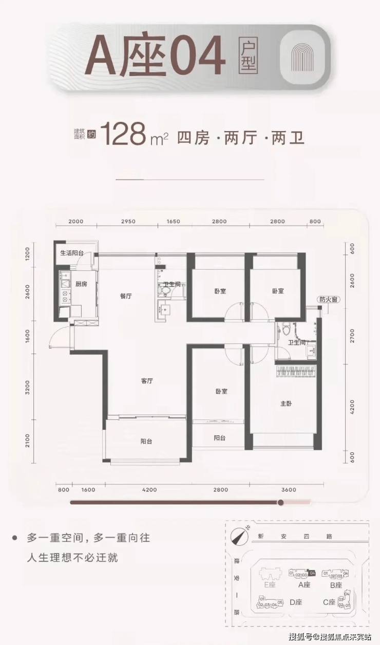 梯户比:A-C座2梯4户,D座2梯5户