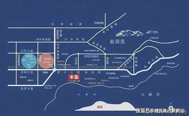 深圳蓝郡公馆地处盐田区沙头角街道沙深路西侧,与沙头角口岸紧密相依,具体地址为沙深路79号,是深港交界的核心口岸物业。项目北靠梧桐山这一大型城市绿肺,南望八仙岭与大鹏湾海景,既能坐拥山海双重景观,又处于盐田CBD的辐射范围内,紧邻盐田区政府等市政核心区域,同时无缝衔接深港两地,下楼即可通过沙头角口岸往来香港新界北,尽享深港一体化的便捷生活圈,周边建筑密度适中,兼具繁华与宜居的双重特质。