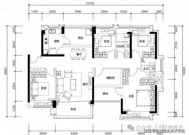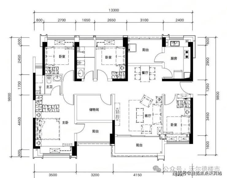 ✅ G01户型:约135㎡ 五房两厅两卫: