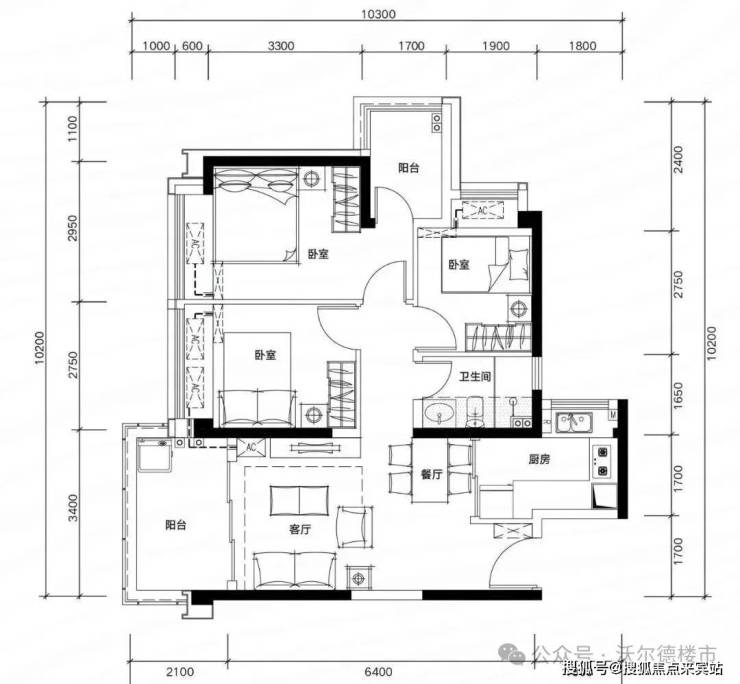 ✅ B06 户型:约109㎡ 阔绰四房两厅两卫: