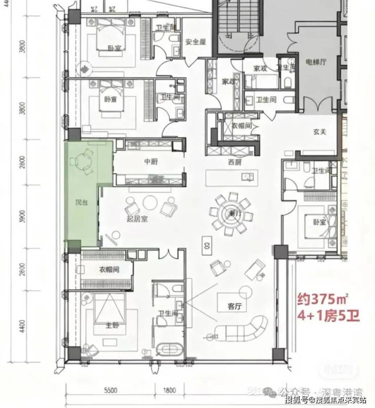 沄玺花园景观聚焦东侧,面向深圳湾人才公园,采用“全向东”布局策略。