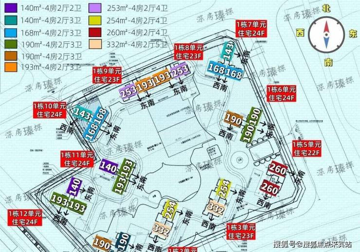 宝安中心区,观潮府计划将在2026年二季度取证入市,面积有140-143㎡的4房2卫,168-190-193㎡的4房3卫,253-254-260㎡的4房4卫,332㎡的4房5卫户型,共629套房源,纯南向户型,预计在2028年底带高品质精装交付。