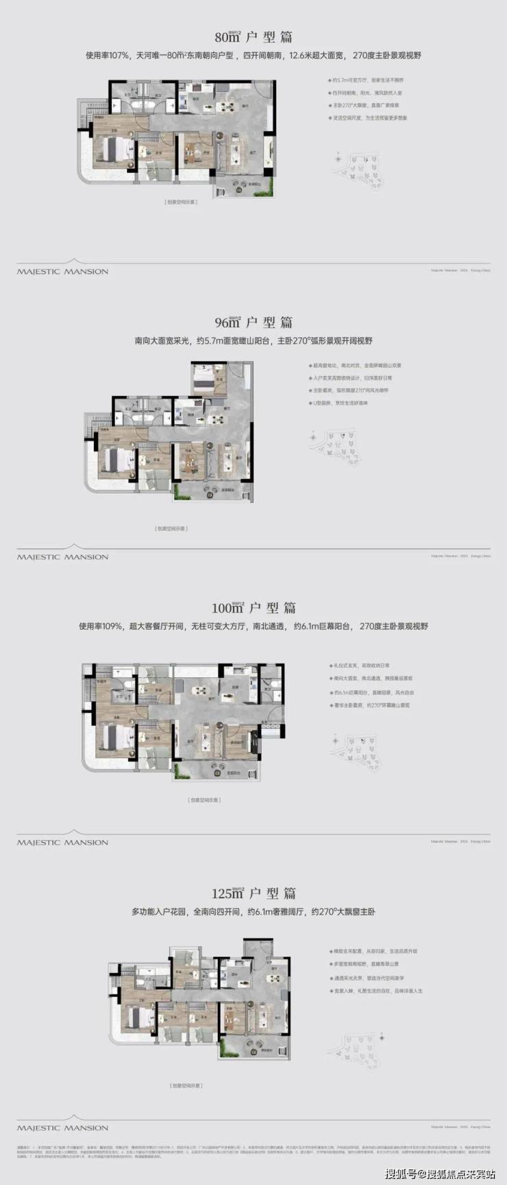 建面约80-125㎡可生长空间、270°全南向瞰山奢居、超100%高空间使用率
