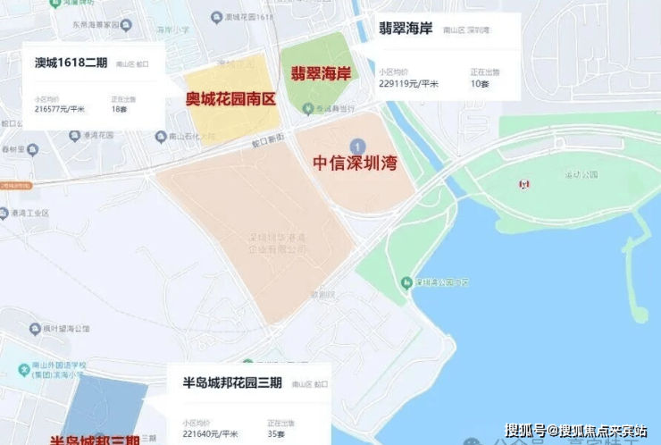 从价格来看,距离中信深圳湾目最近的小区:翡翠海岸、半岛城邦花园三期、奥城花园南区等二手房挂牌价均在22万/㎡左右(来源于贝壳),甚至巅峰期价格一度到达30万+/㎡。