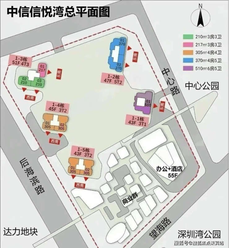中信深圳湾规划总建筑项目占地面积约4.4万㎡,总建筑面积约31.8万㎡,项目一期规划共5栋超高层住宅;二期规划为商办、顶奢酒店和商业盒子业态。