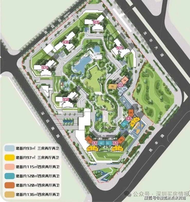 中洲迎玺园林效果图规划图来看三期同样规划有泳池