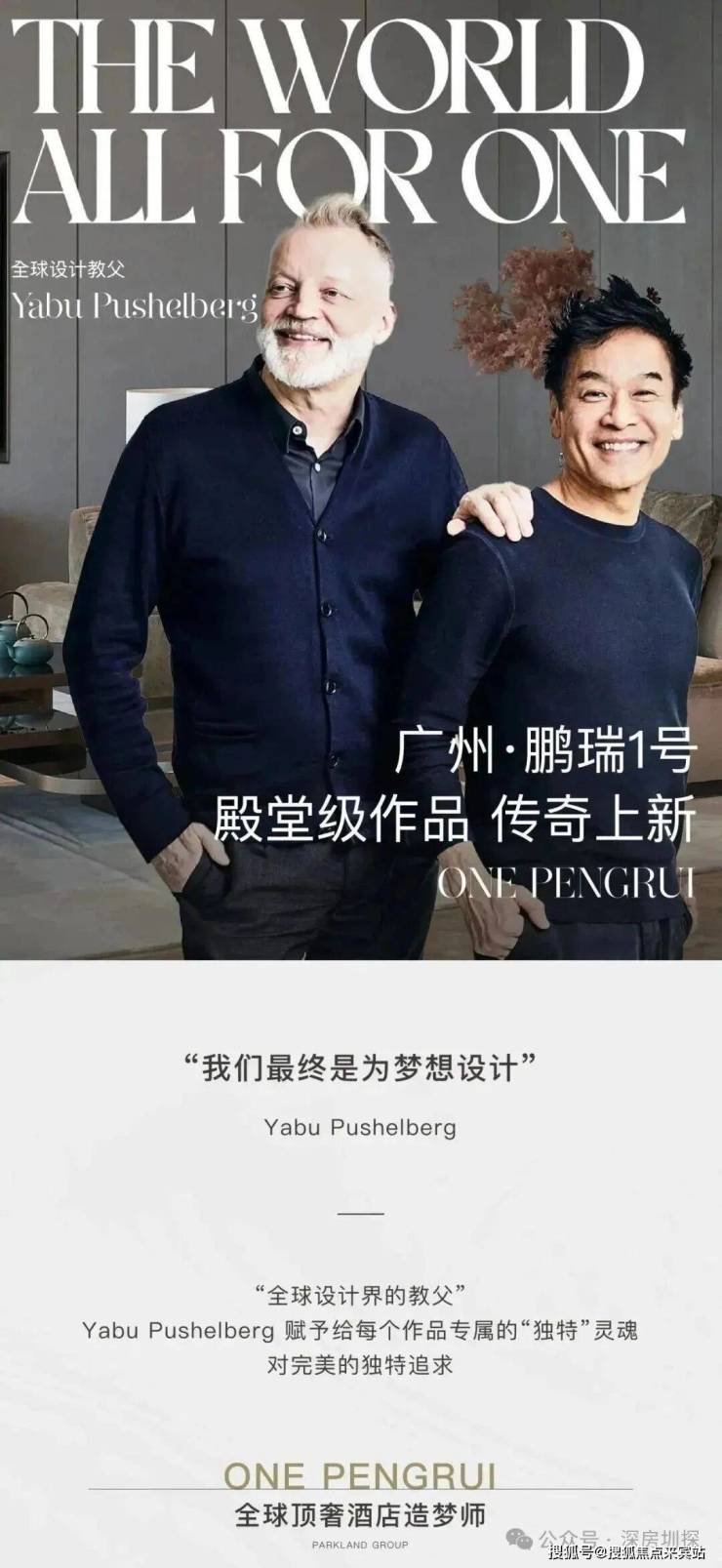 广州鹏瑞1号的落成由美国KPF(建筑设计)、AECOM(园林设计)、Yabu Pushelberg(室内设计)、梁志天设计、香港CCD事务所等深圳湾1号原班设计大师团队,还有“豪宅专家”英国1508 LONDON、英国FINCHATTON等大师一同参与。