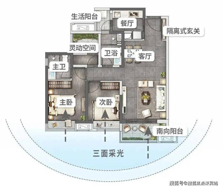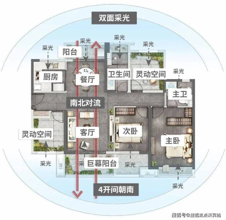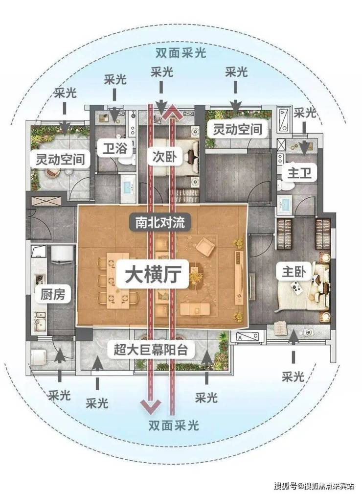 建面约117平3+1户型设计另一个建面约117平竖厅3+1户型设计,布局传统,尤其方正。对喜欢大家庭、南向生活的买家来说,这个户型非常友好,从主卧到次卧,再到N+1灵动空间,四开间朝南,你与家人的每一个早晨,都能在和风旭日里睡到自然醒。