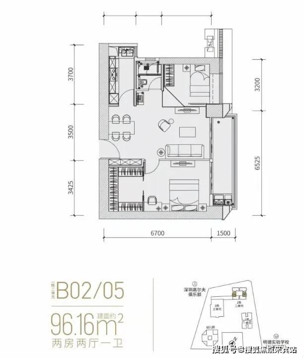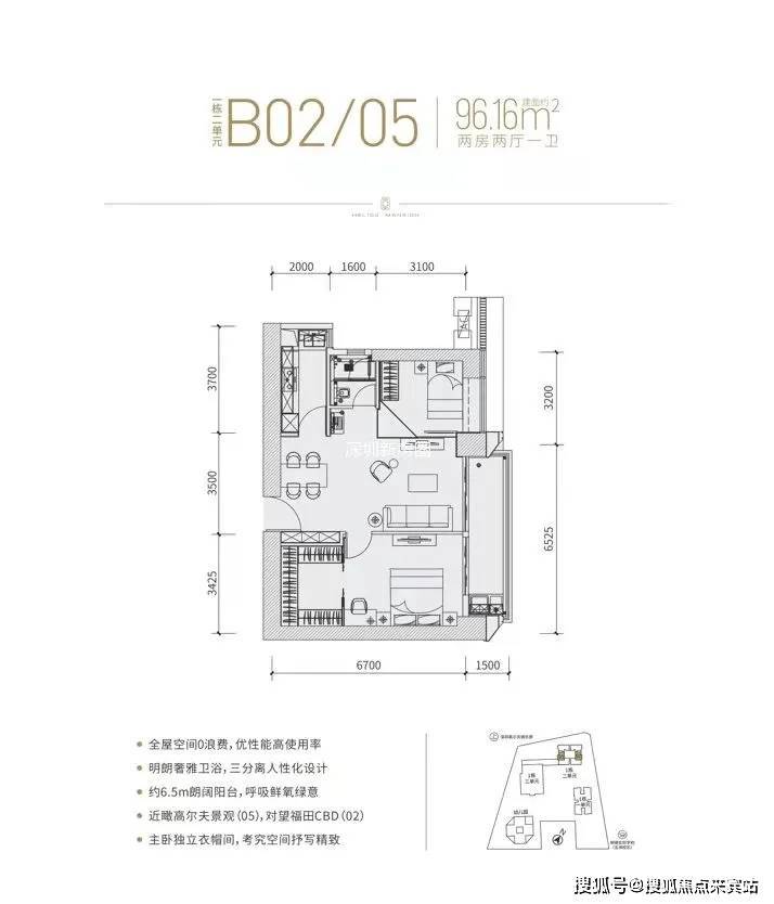 分布在02(东北向)和05(西南向),作为「富通九曜公馆」入门级户型,细看主卧空间很大,硬隔个2+1房还凑合。但无论是二房还是2+1,一卫其实并不匹配福田这个位置的主流群体。