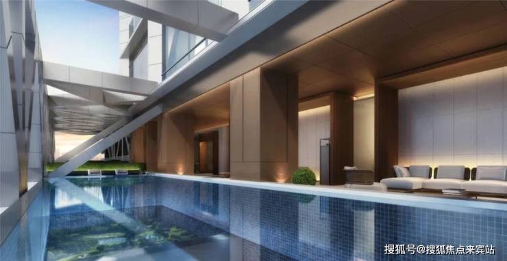 项目的设计特色之一在于其独具匠心的空中泳池,百米高空之上设置空中连廊,连廊置入空中泳池、健身等配套功能。