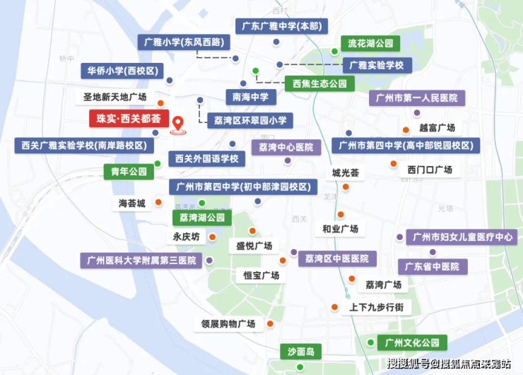 丰富的周边生活配套:项目南面距离荔湾湖公园约700米,适合老人和小孩散步休闲。项目与荔湾湖公园以及珠江直线距离约400米,部分房源可南瞰荔湾湖公园的碧波,西南方向还能欣赏到珠江江景。周边生活气息浓厚,中山八、北京路、永庆坊等商圈景点众多,圣地新天地购物广场、领展广场等大型商业场所也在附近,吃喝玩乐一应俱全。项目周边医疗资源丰富,为家人的健康提供了有力保障。