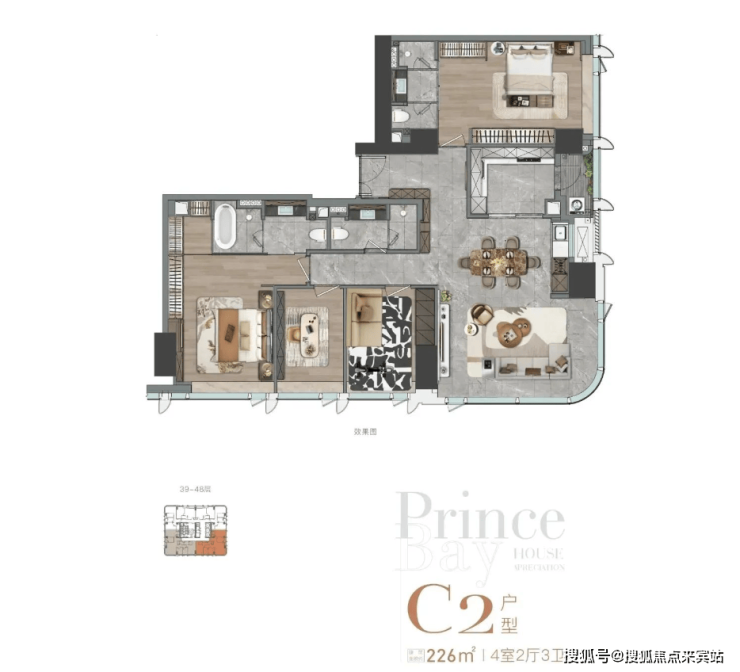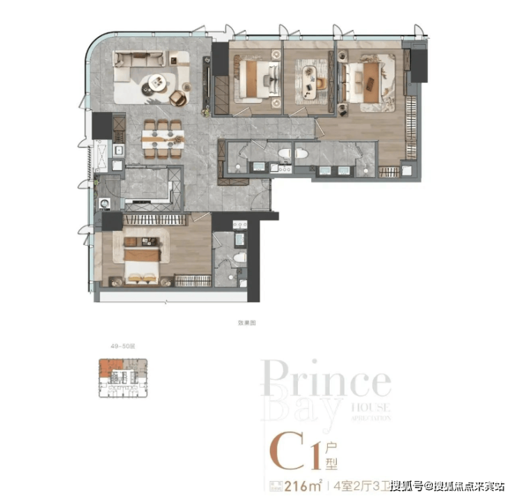 大尺度空间 纵享环幕视野大平面大尺度定位,层高约3.6米,横厅设计确保最大化观景面全户型纵享环幕视野。项目打造主力建面约215-415㎡纯粹品质公寓共191席,顶层为建面约1270㎡公寓产品。