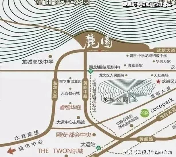 项目位于深圳龙岗黄阁北路龙城高级中学东侧,坐拥大运新城、龙岗中心城和回龙埔三大片区城芯区位,背靠约2000万㎡麓山绿肺,周边清林径森林公园、龙城公园环绕。临近已开工建设的16号线回龙埔站。同时,项目内设约2000㎡优质幼儿园,毗邻拥有多所知名大学的深圳国际大学城,坐拥龙岗中心城、大运中心千亿级配套,是不可多得的兼具稀缺半山景观资源又同时拥有城市繁华配套的理想住所。