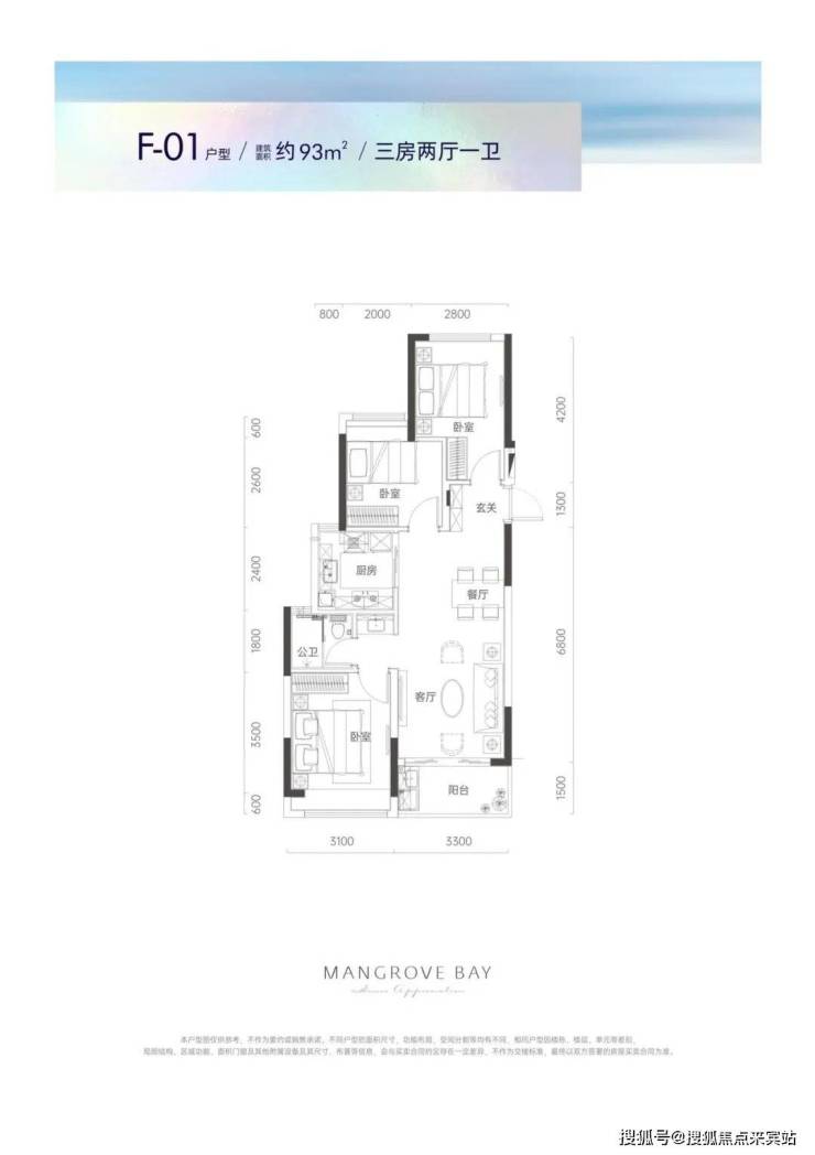 A02户型76平2房2厅1卫:房间和客厅朝南向,采光充足;约5.8米开阔观景阳台,俯瞰红树林自然生态;F01户型93平3房2厅1卫:客厅、餐厅连通阳台,自然采光充足;宽景竖厅,空间开阔;主卧独立卫生间,隐私雅奢生活;动静干湿分离。