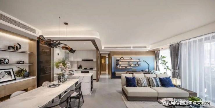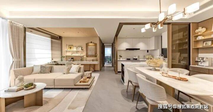 建面约105㎡三房轻奢范本,注重质感与尺度升级。LDKB无界方厅、瞰景阳台、立书房、社交U型厨房及主卧阳台,搭配+1可变空间,承载多元生活场景。