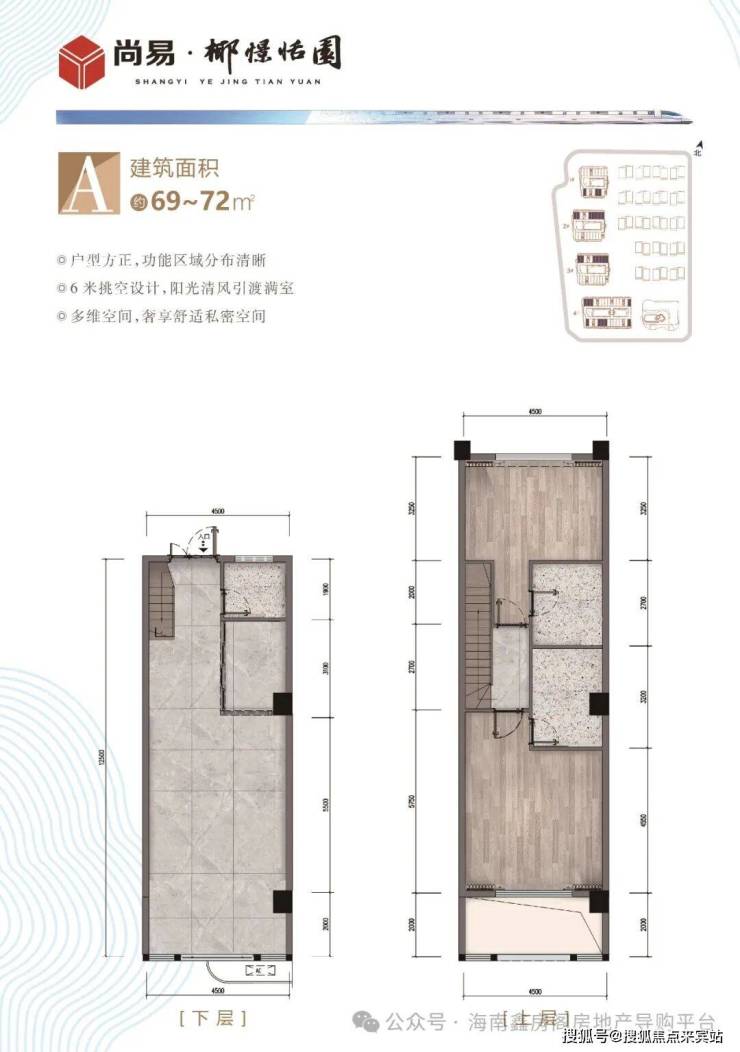 跃层三房:62-65-68-70㎡ 南北朝向