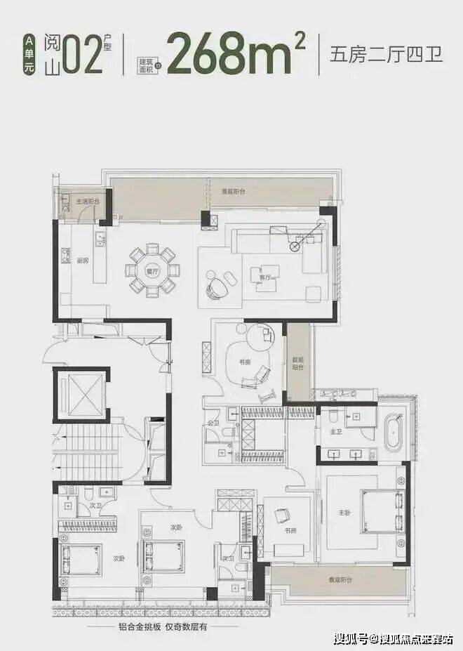 珑樾山建面约 268 ㎡ 02户型 5房2厅4卫