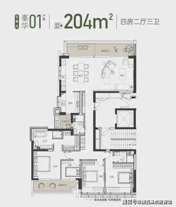 珑樾山建面约 204 ㎡ 01户型 4房2厅2卫