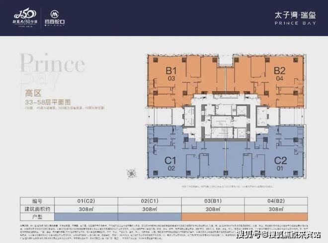 户型分布在高区33-47层,4个户型朝向,也可以两套打通做620㎡大户型,东南跟西南主要看海景,西北跟东北斗可以看部分海景+大小南山景观