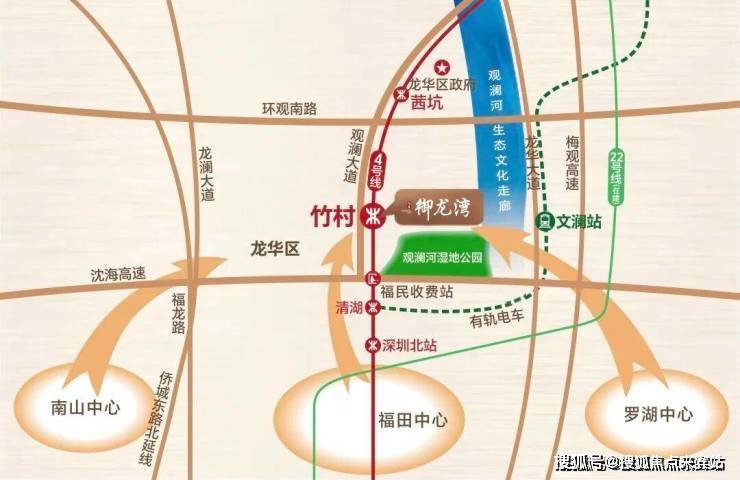 ✨轨道交通:地铁4号线竹村站上盖,商业MALL直连,停车场直连地铁出入口,7站速达深圳北、13站钟直达福田中心,对接深港生活圈;有轨电车文澜站,直线距离约500米,地铁22号线(在建中)。
