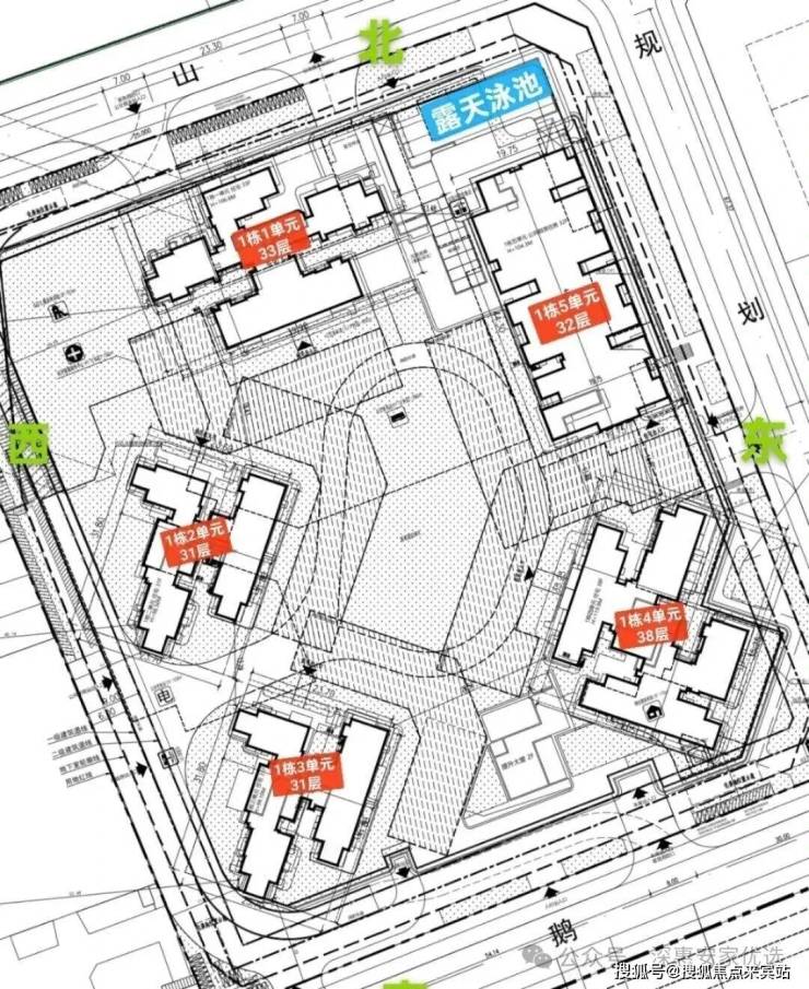 总栋数及楼高:5栋,31-38层