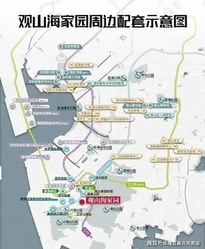 学校配套:远洋观山海紧挨着的西北侧地块规划有1所36班制小学,目前还没有对外公布是什么学校,根据南山区教育局2024年最新的学区划分,小学学区划分在南山实验教育集团荔湾小学,距离约500米,初中学区划分在深大附中初中部,距离约1.1公里。