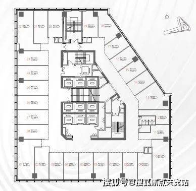 中区和高区办公楼标准层平面图
