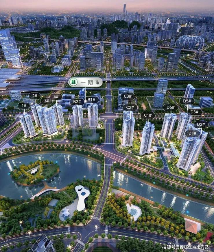 住宅项目分南北组团开发,整体预计约1300套单元。距离广州南站约400米,约5分钟步行距离,有效减少轨道列车及周边车辆干扰。首推北组团B1#、B2#楼栋。B1#和B2#均为两梯四户设计,高24-25层,总货量约186套。