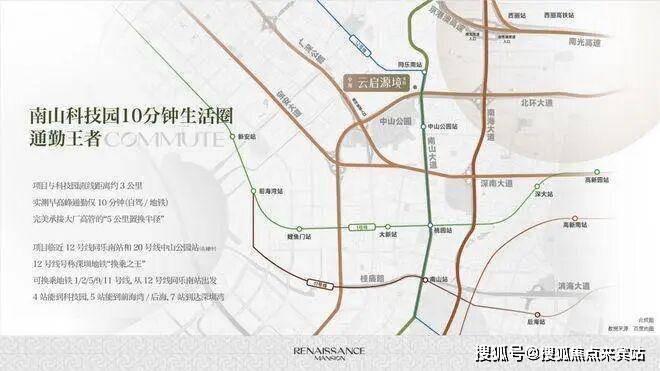 中海云启源境家园,由中海集团打造,位于南山区北环大道南农路西侧,紧邻中山公园,距离中山公园地铁站约700米,交通便捷。项目地处南山中心区与科技园辐射范围内,周边聚集了高新技术产业与总部经济资源,是深圳核心产业集聚区之一。该片区以科技研发、金融商务为主导,依托科技园的地缘优势,吸引了大量科技企业与高端人才,形成产城融合的发展格局