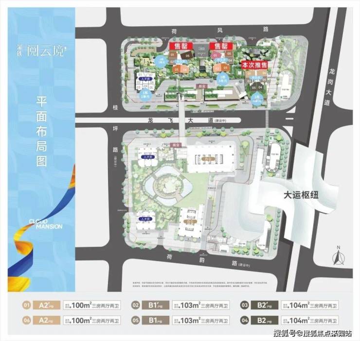 深铁阅云境广场,作为大运交通枢纽上盖物业,总占地面积约5.66万㎡,总建筑面积约51万㎡,以龙飞大道为界共分南北2期开发,有空中连廊相连,北区建设住宅小区,南区兼顾了公共性和便捷性,主要规划超高层办公写字楼和大型商业mall。