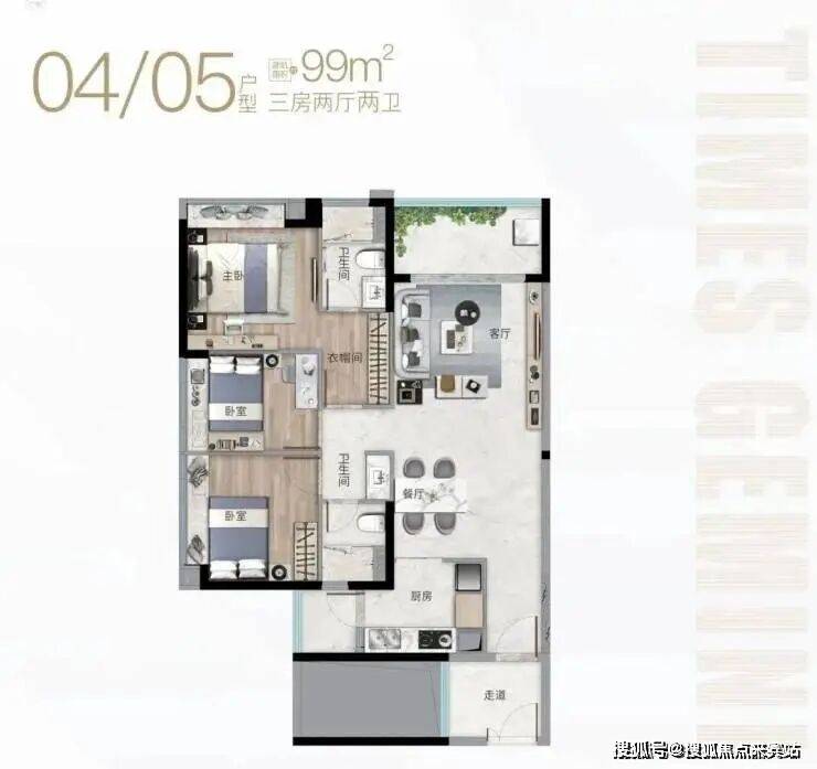 产品类型:建面约56-107平方米奢装二至三房